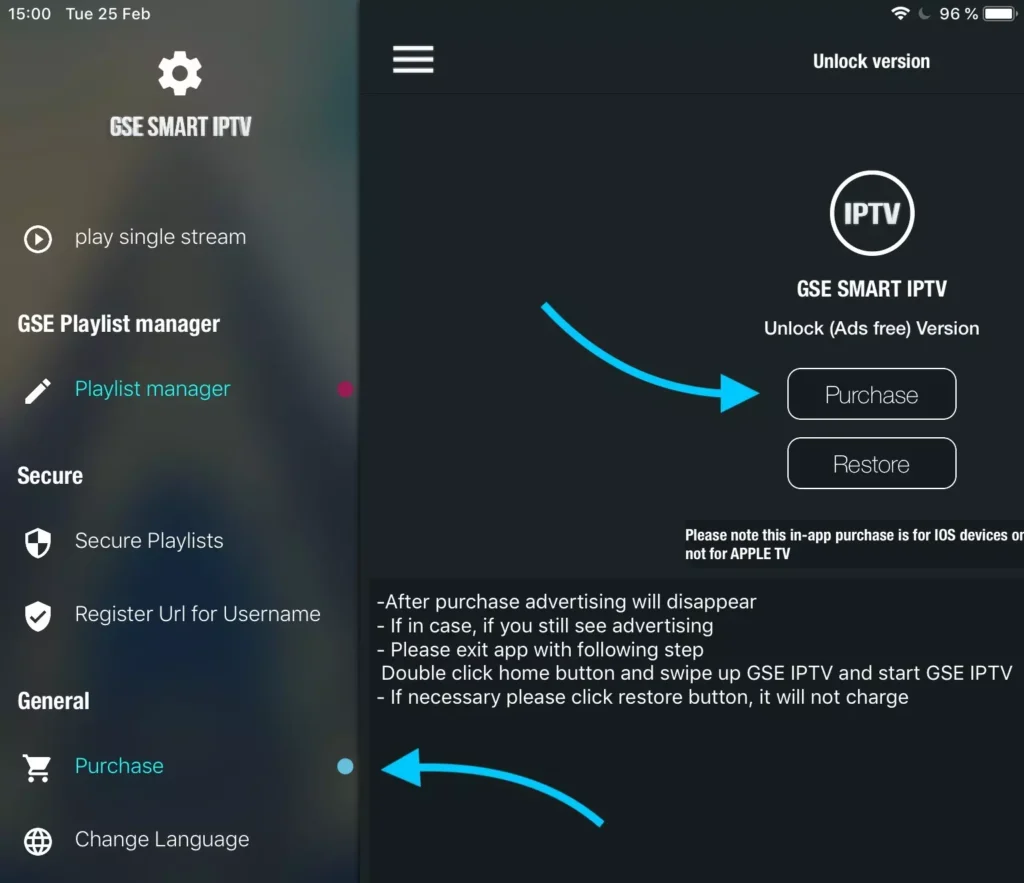 GSE smart IPTV free version show advertise while change channels, You need purchase it to remove ads .