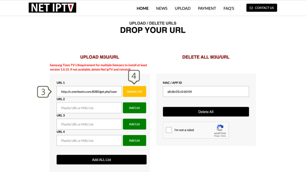 - Upload M3u link via portal Open app upload page via browser : http://netiptv.eu/Upload