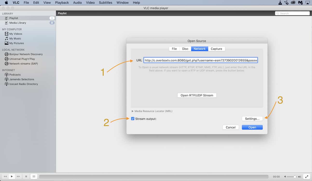 - Enter M3u linkAfter installation go to File > Open network and paste the m3u link in URL